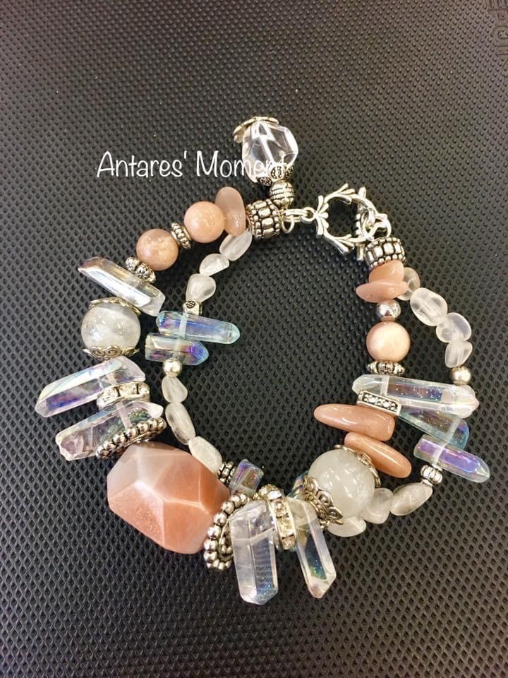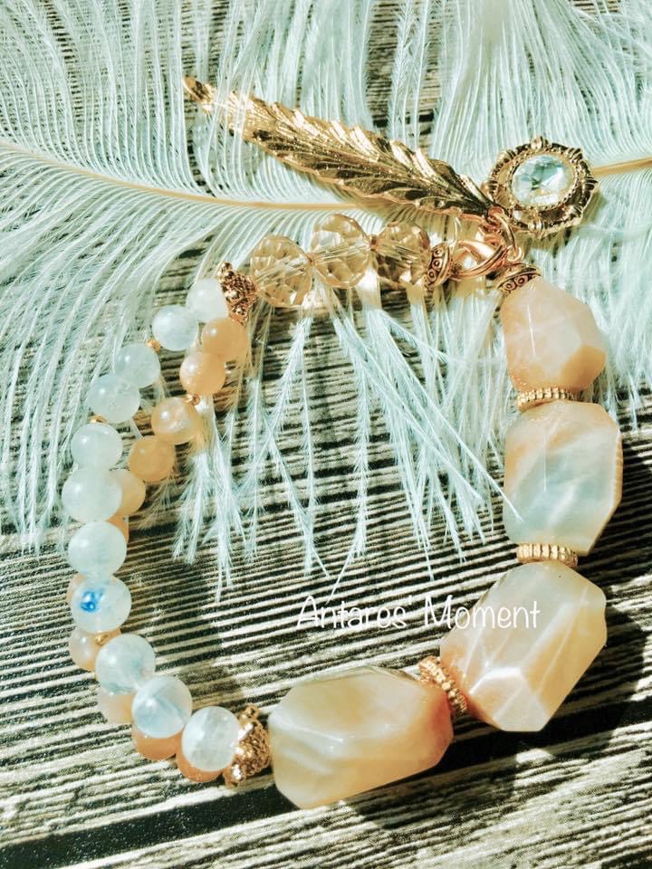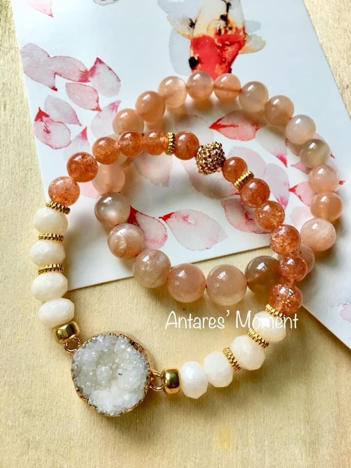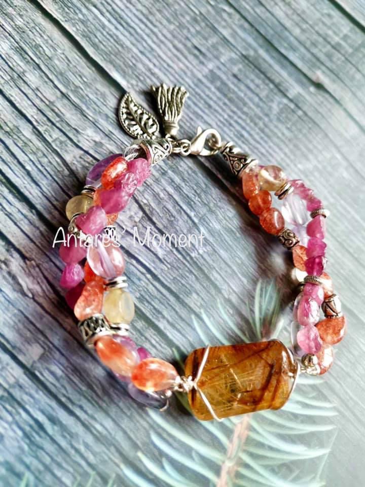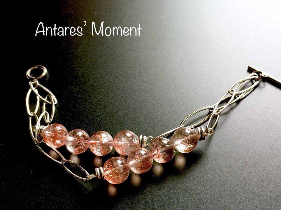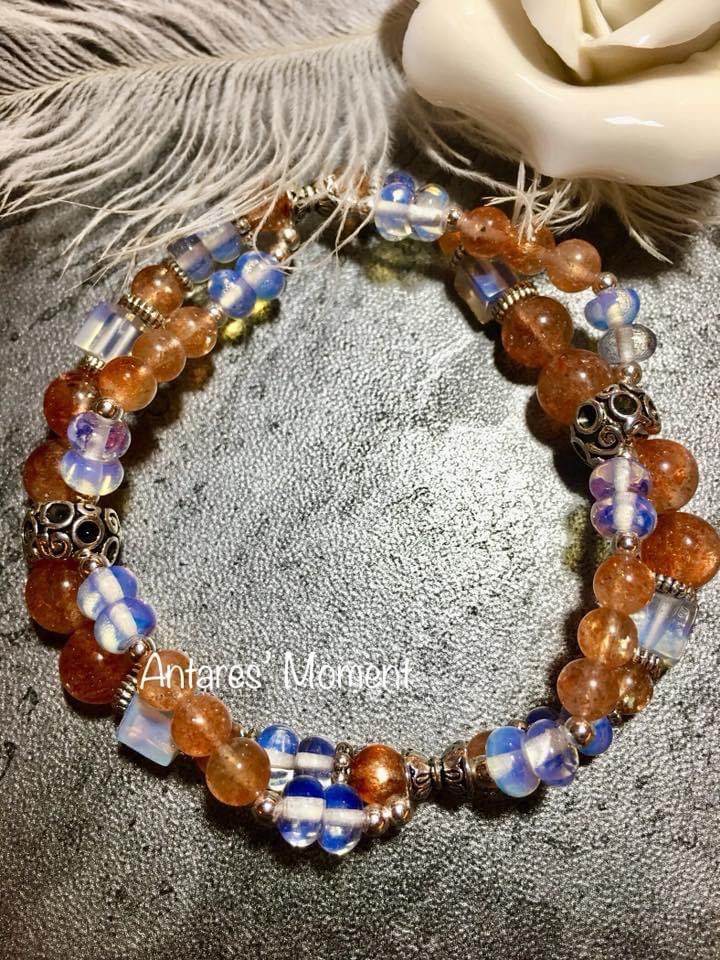 顏色:透明水晶內有橙色的結晶體、高級的太陽石啦內裏有彩色的輪狀閃片